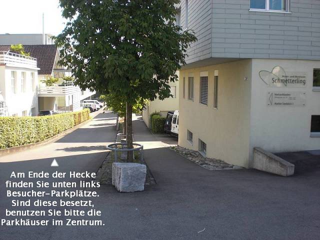 Zufahrt zu unseren Besucher-Parkplätzen (hinter dem Gebäude)