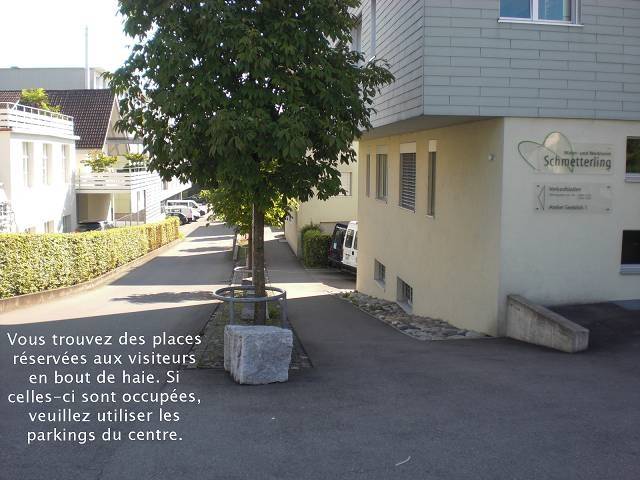 Accès à nos places de parc pour les visiteurs (derrière le bâtiment)